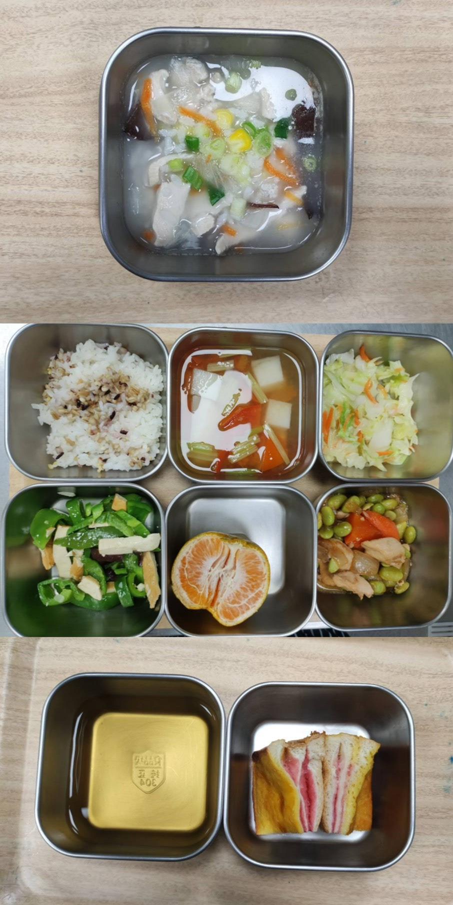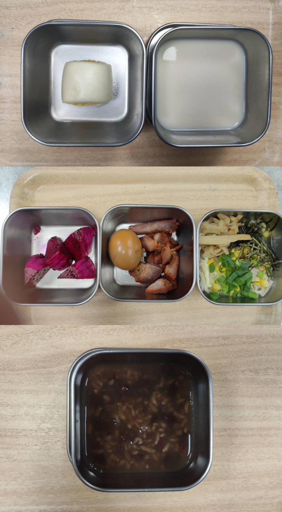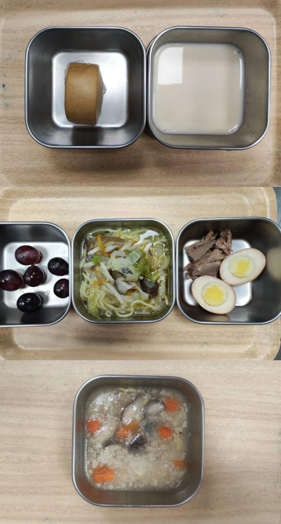 2025.09.16餐點 食在健康 早餐-紅豆燕麥粥 午餐-五穀飯/馬鈴薯燒肉/木須炒蛋/季節青菜/香菇枸杞雞湯/水果 點心-鮮奶麵包/洛神花茶 2025-09-16 Michelle Read more