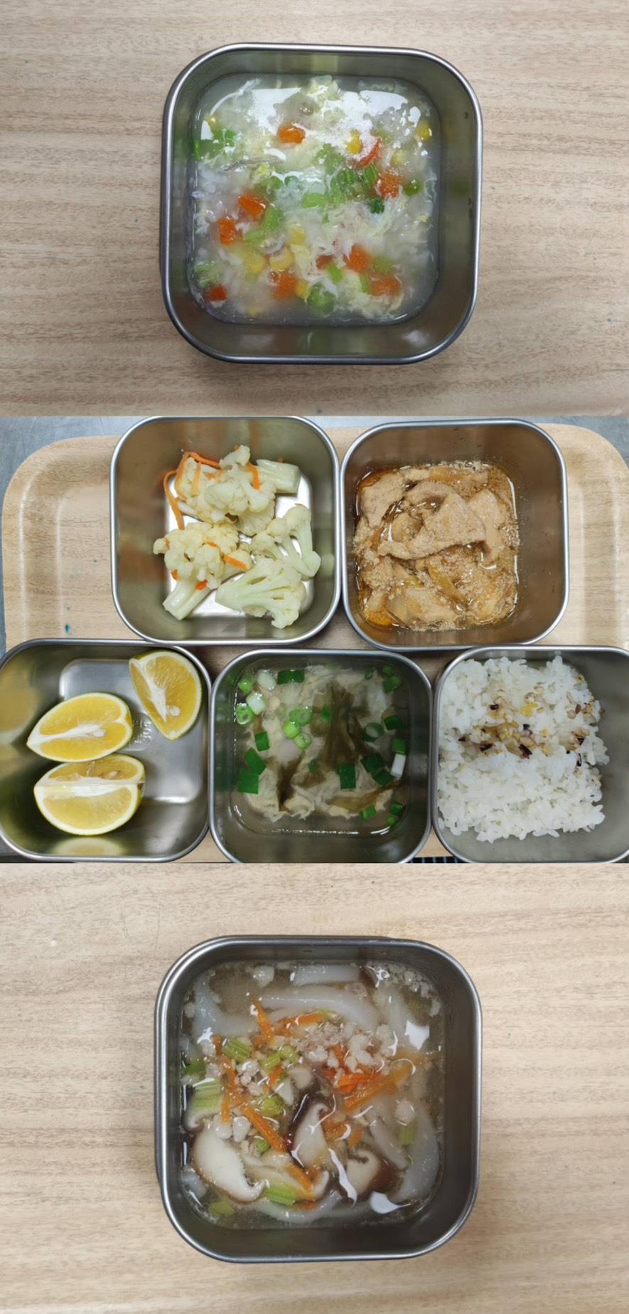 2025.08.14餐點 食在健康 早餐-雞絲米粉湯 午餐-五穀飯/毛豆雞丁/木耳炒蛋/季節青菜/山藥排骨湯/水果 點心-玉米濃湯(因廠商送錯故更換菜單) 2025-08-14 Michelle Read more
