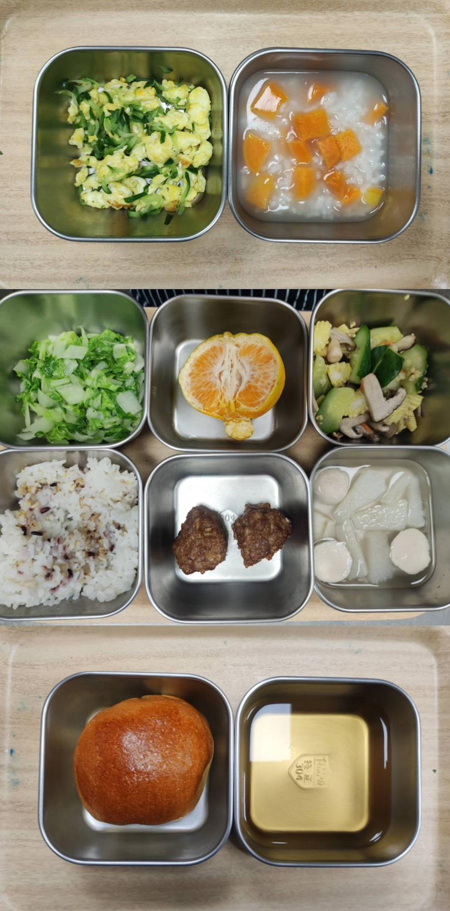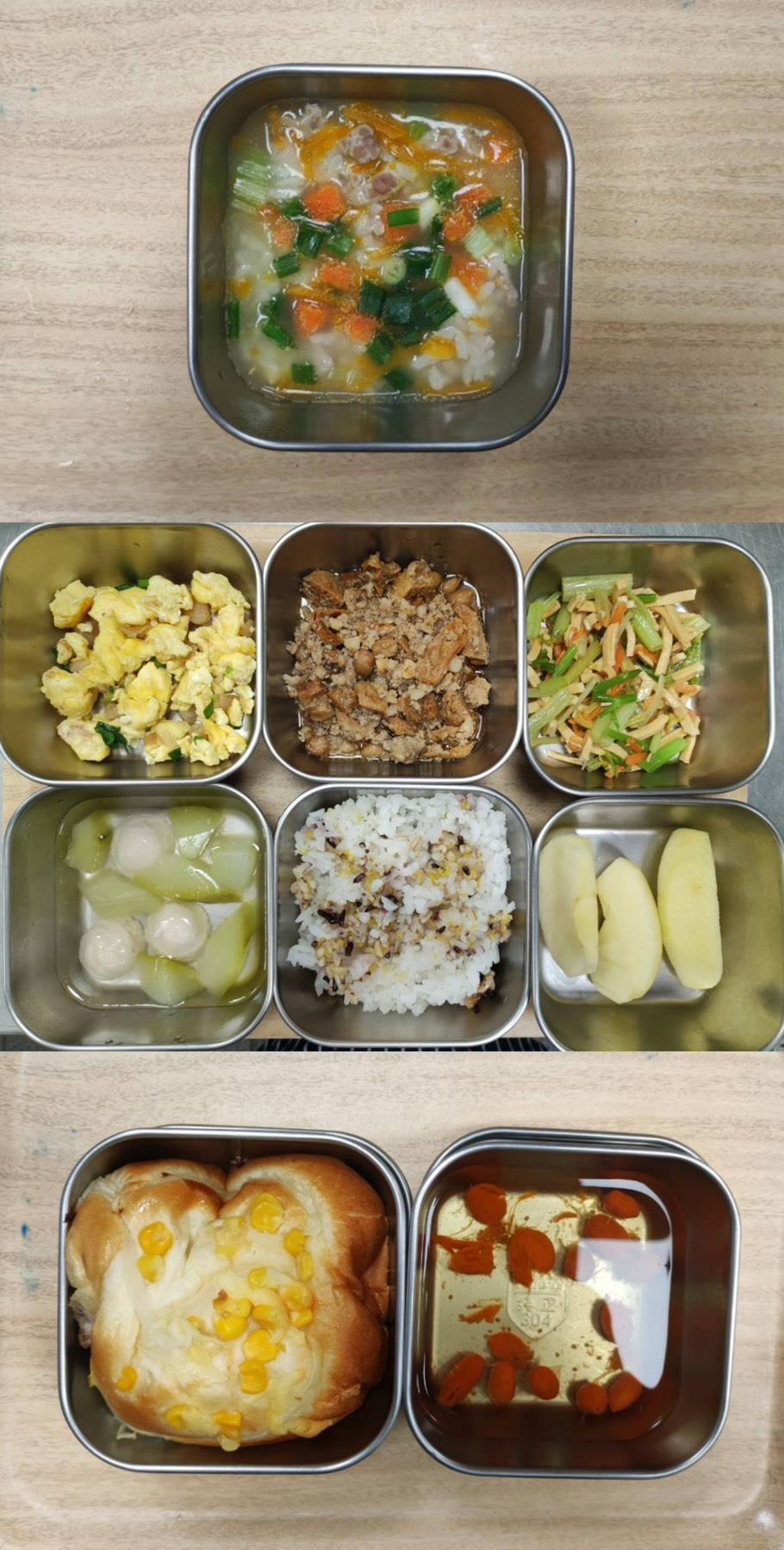 2025.09.09餐點 食在健康 早餐-金瓜鹹粥 午餐-五穀米/玉米炒雞柳/什錦菇燴豆腐/季節青菜/大頭菜排骨湯/水果 (大頭菜缺貨故以竹筍代替) 點心-乳酪麵包/冬瓜茶 2025-09-09 Michelle Read more