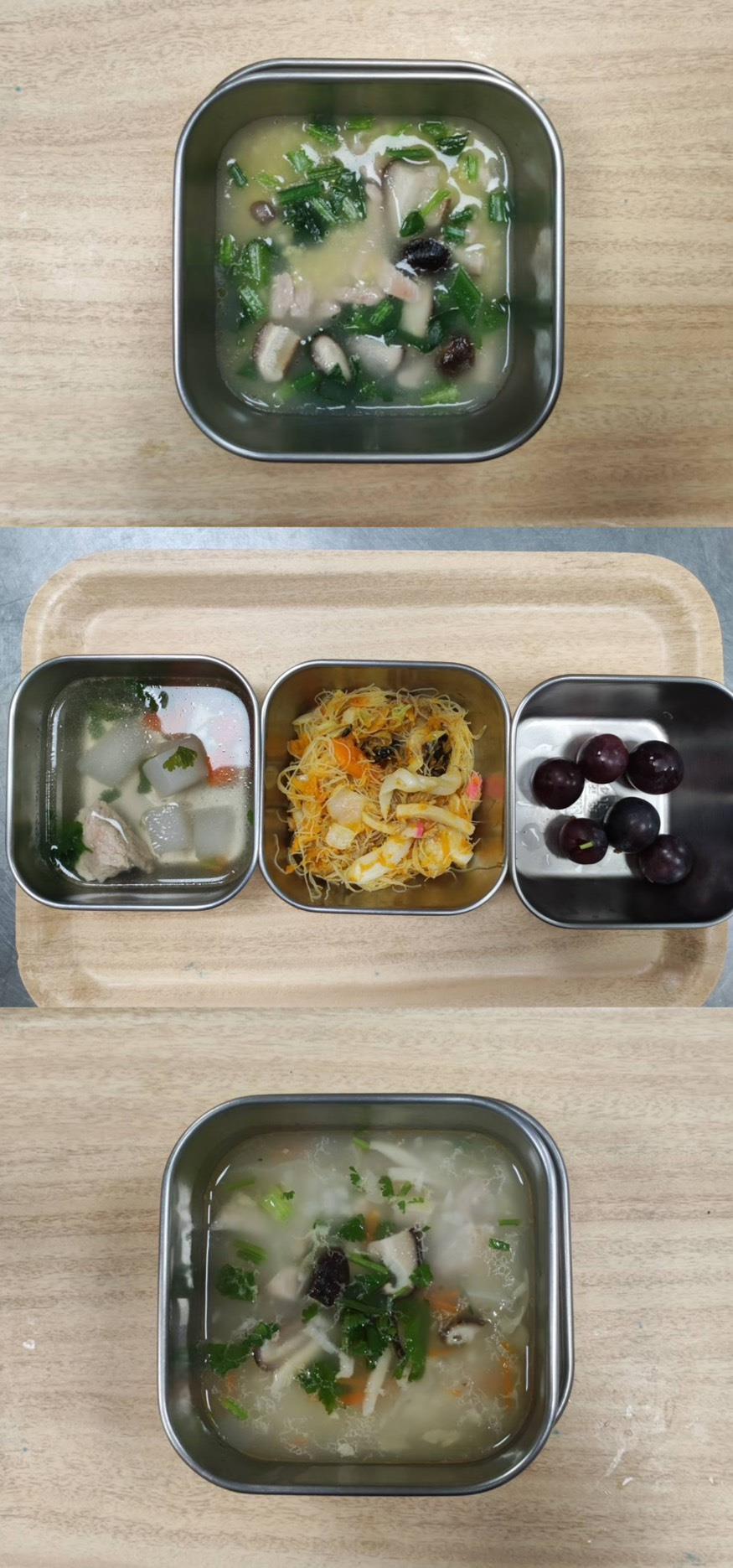 2025.07.15餐點 食在健康 早餐-蔬菜雞肉湯 午餐-五穀飯/筍乾爌肉/紅蘿蔔炒蛋/季節青菜/大黃瓜魚丸湯/水果 點心-葡萄餐包/菊花茶 2025-07-15 Michelle Read more