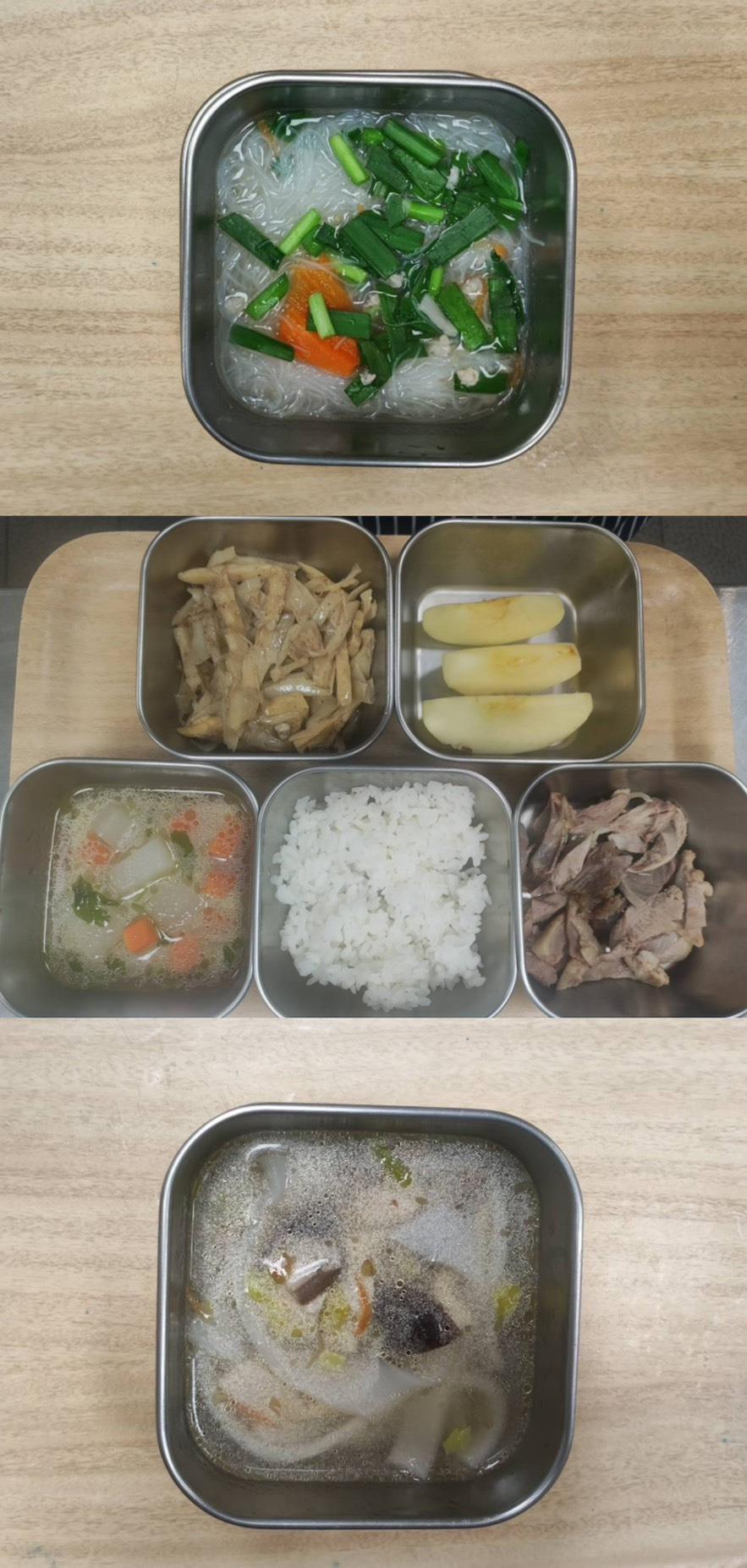 2025.08.19餐點 食在健康 早餐-雞肉鮮菇羹 午餐-五穀飯/馬鈴薯燒肉/紅燒豆腐/季節青菜/蘿蔔排骨湯/水果 點心-蔓越莓餐包/紅棗茶 2025-08-19 Michelle Read more