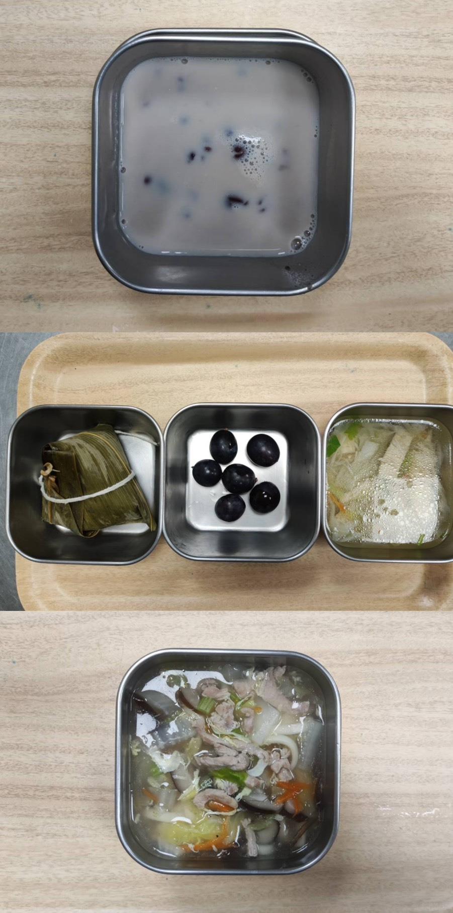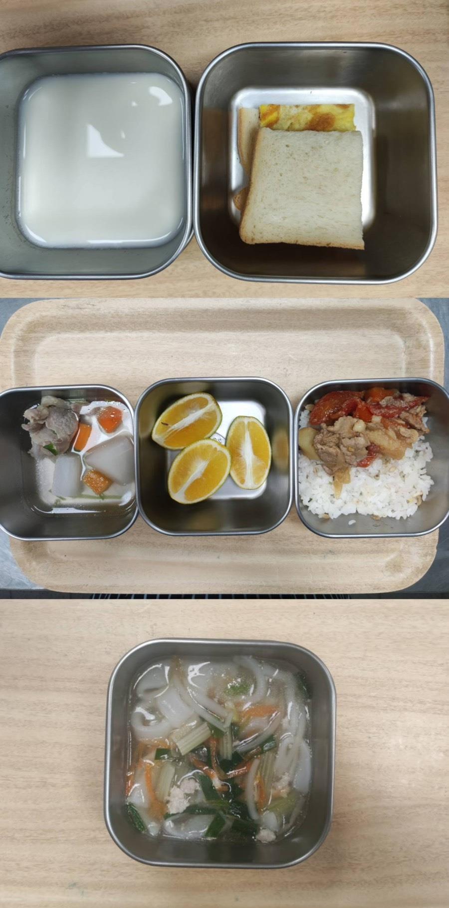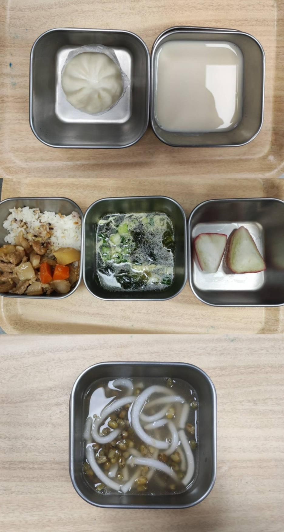 2025.06.17餐點 食在健康 早餐-貢丸肉燥冬粉 午餐-五穀飯/芋頭燒肉/蝦仁蒸蛋/季節青菜/鮮魚味增豆腐湯/水果 點心-蒜香吐司/紅棗茶 2025-06-17 Michelle Read more