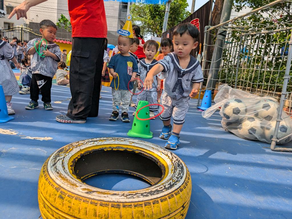 金魚班,小兔邦邦生日派傳氣球遊戲。