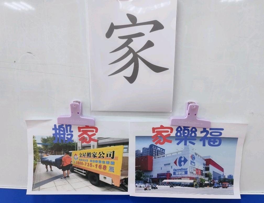 認字「家」家樂福、搬家、家庭、家人等語詞。