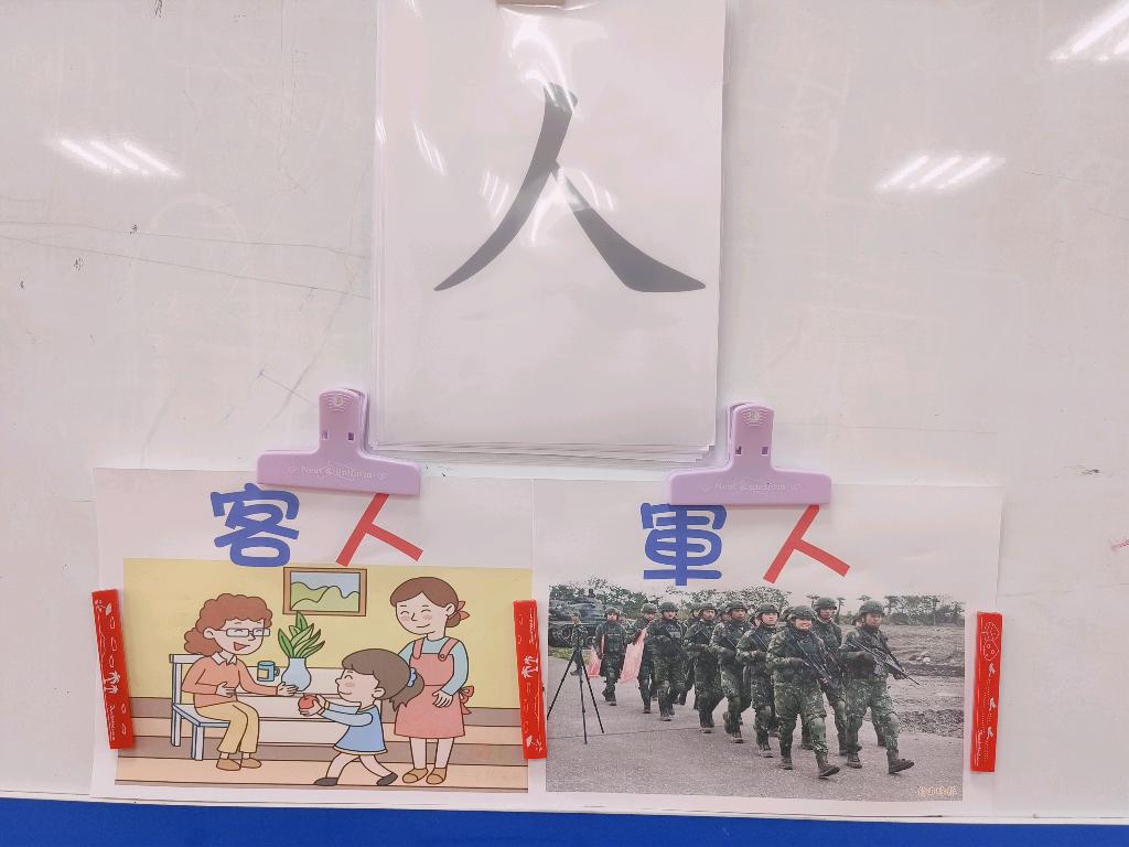 認字「人」軍人、客人、日本人、中國人、台灣人、家人、大人...等。