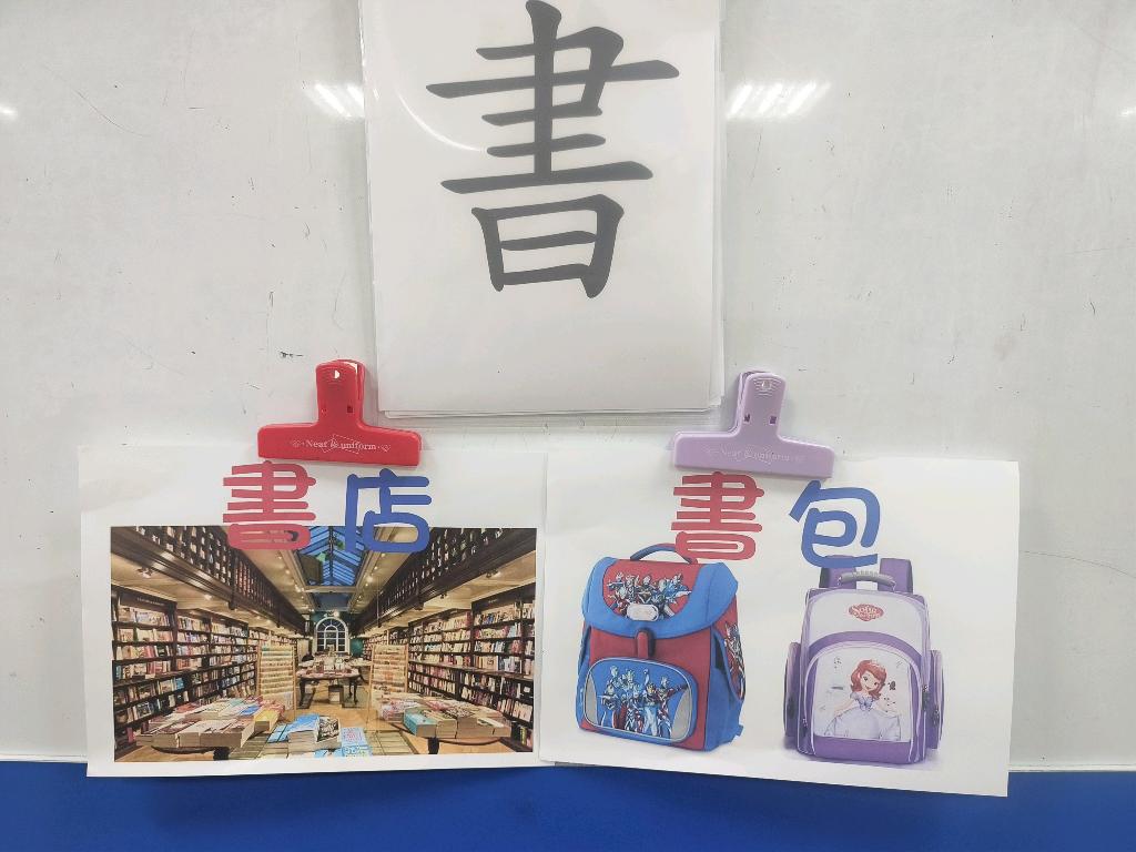 認字「書」書店、書包、書名、圖書館、書法、書架...等語詞。