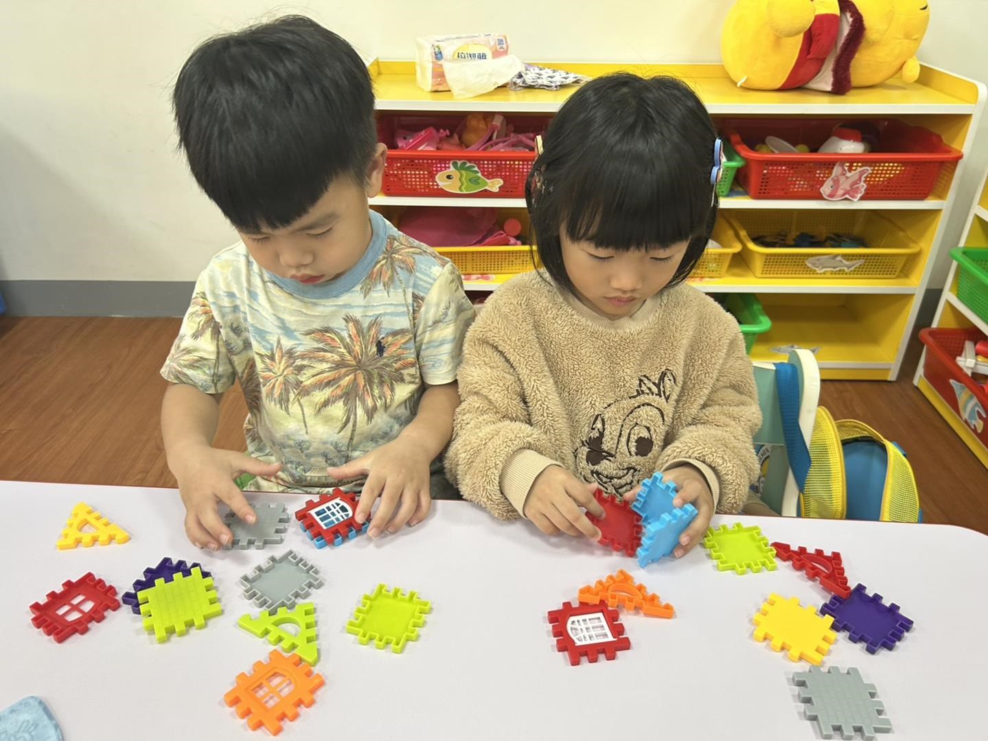 *生活與分類教具操作 利用積木和圓形教具分類顏色對應