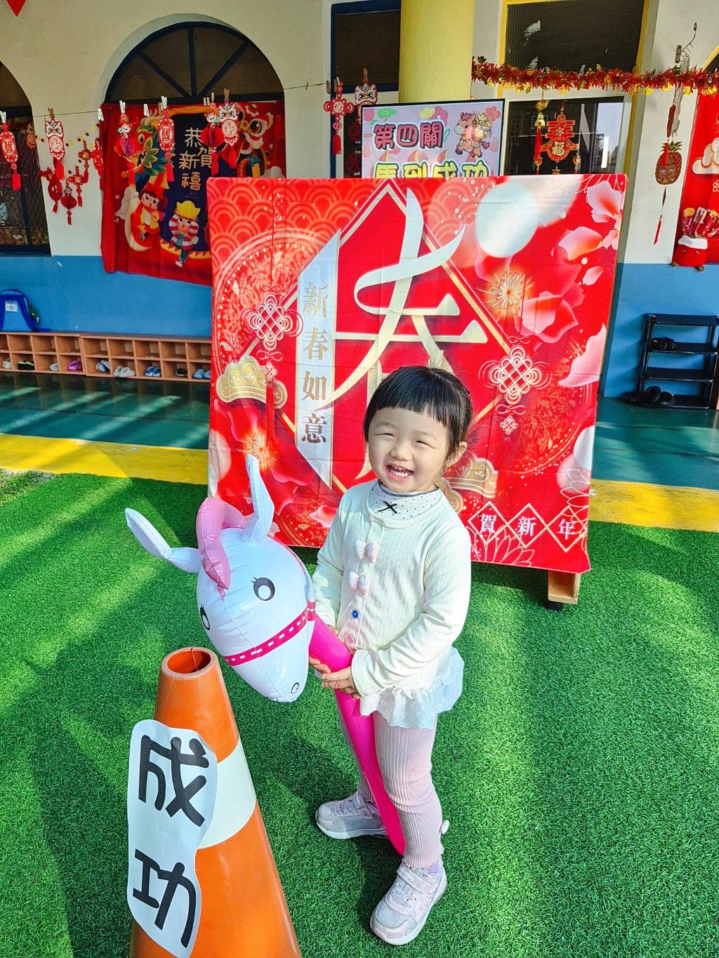 寶貝與充氣麋鹿🫎拍照