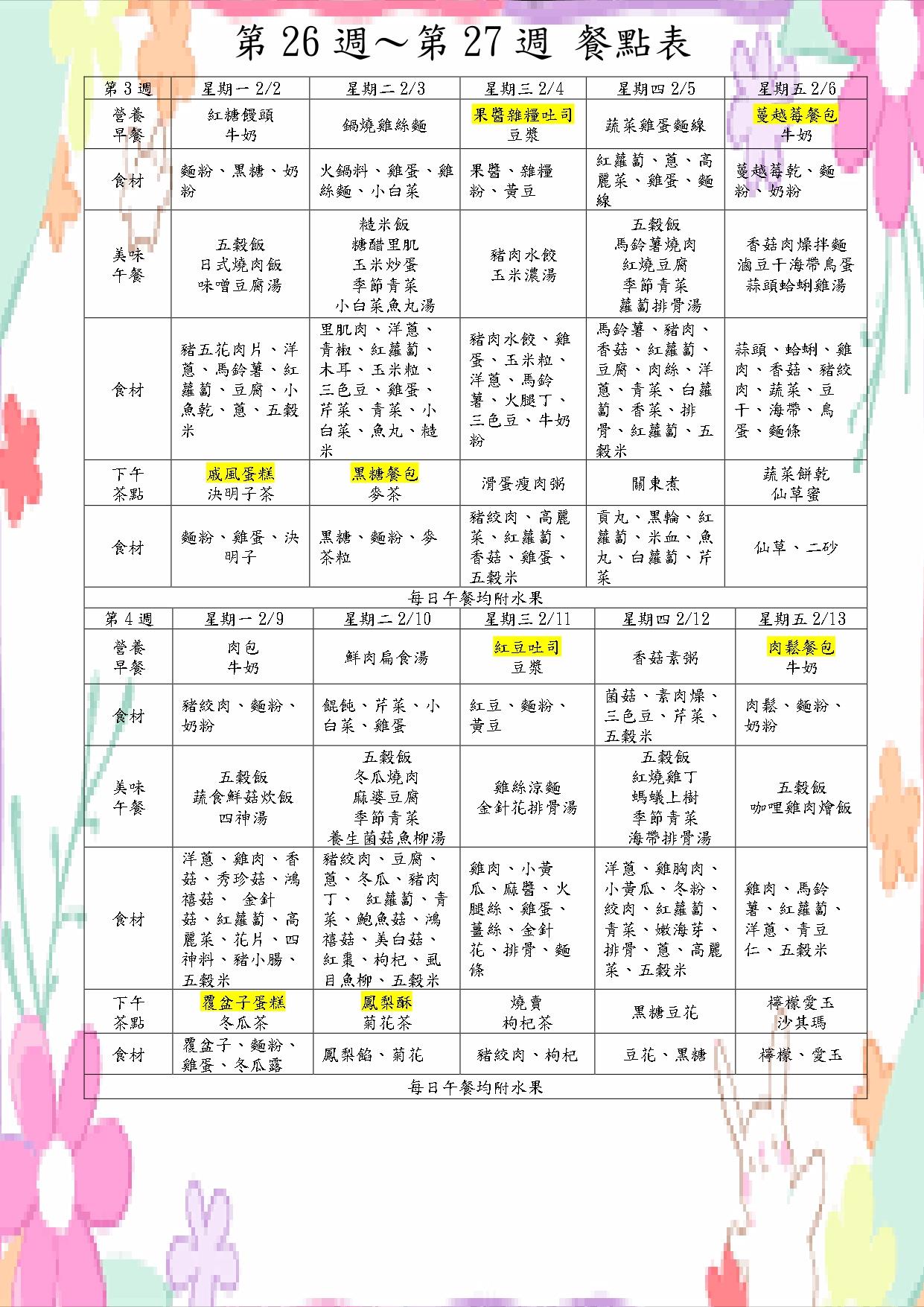 113上學期餐點表