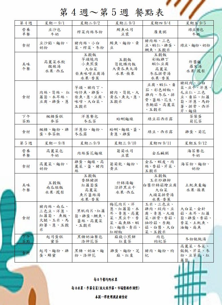 113學年度第一學期第四週-第五週餐點表