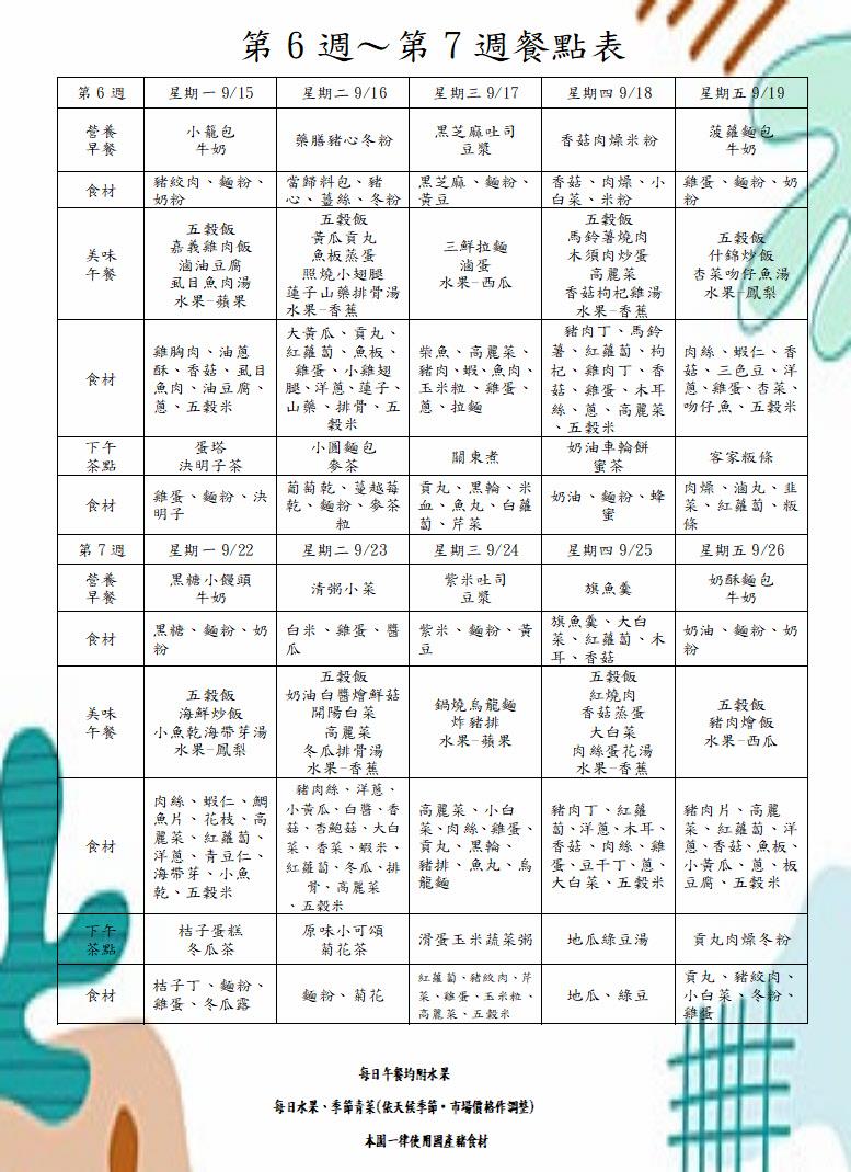 114學年度第一學期第六週-第七週餐點表