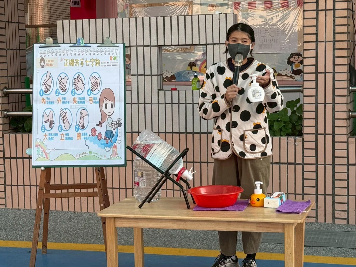 衛生保健宣導-什麼時候要洗手 活動消息 讓幼兒理解手上常常會沾到看不見的細菌,因此需要常洗手。介紹需要洗手的時候,例如:吃東西前、上廁所後、摸鼻子、打噴嚏或咳嗽後、玩完玩具、戶外活動回來後、接觸動物之後、手髒髒、有油、有泥土時,接著示範正確洗手七步驟:「內、外、夾、弓、大、立、腕」,並帶幼兒一起練習。 2025-11-26 顏翊宸 Read more